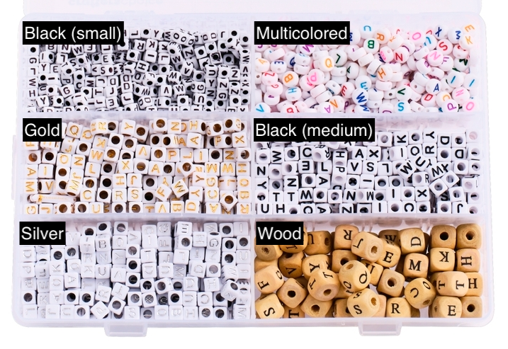 Each charm can include 1 to 3 decorative beads on either side of the name. Please refer to the images for options and examples.